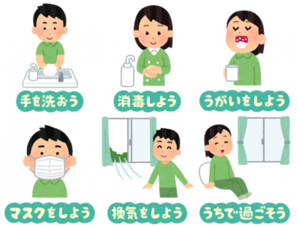 本校におきましても、マスク着用、手洗い、換気、対人距離の確保など感染症への対策を継続しますが、校内での感染を予防し、感染症の影響を最小限にするためにも、次の点につきまして保護者の皆様のご協力をお願いします。