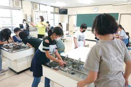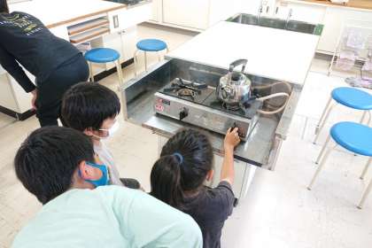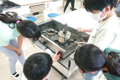 はじめてコンロの火をつける子どもたちも多く、おそるおそるつまみを回している子どももいました。