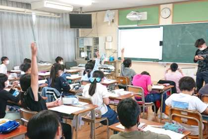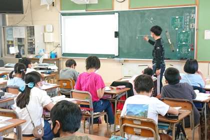 算数科の時間は、合同な三角形を作図するために、どの辺の長さや角の大きさを調べることが必要なのか考えながら、実際にコンパスや定規を使って合同な三角形を作図しました。