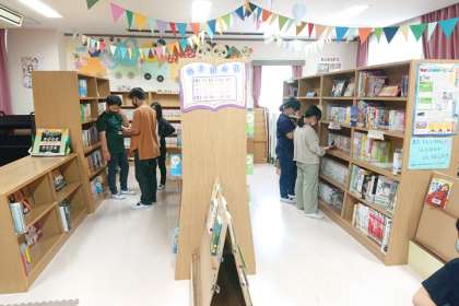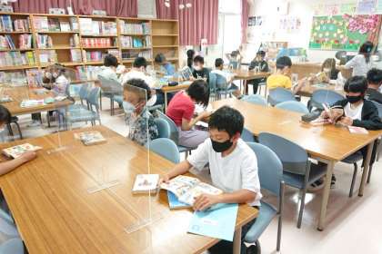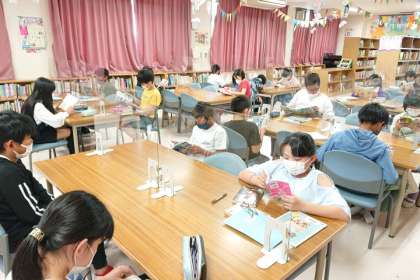 子どもたちが、自分で選んだ本を静かに読んでいます。