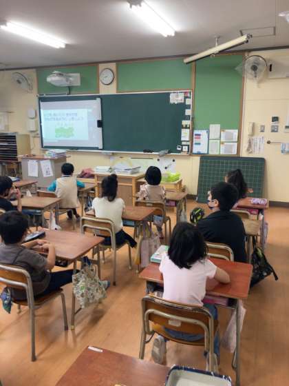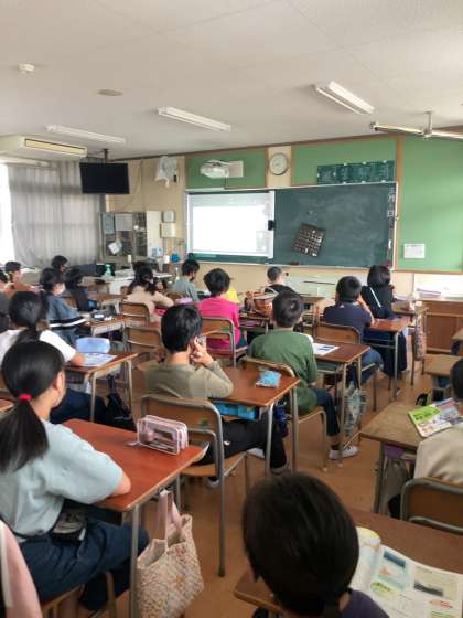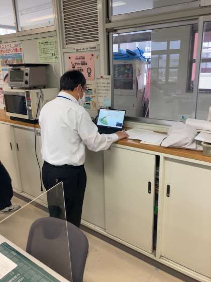 今日の児童朝会は、職員室と各教室をオンラインで結んで行いました。