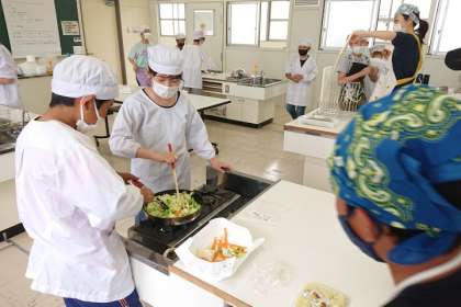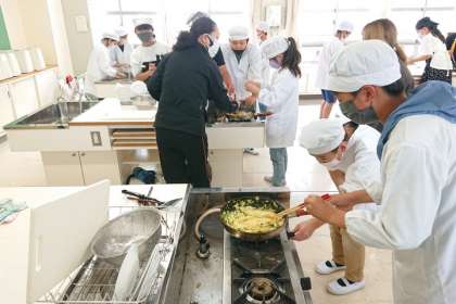 家庭科の時間は、子どもたちが楽しみにしている調理実習をしました。