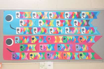 教室近くの階段の踊り場にあるボードに掲示しています。
