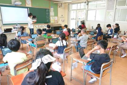 今日は、1人1台PCを使って、実際にログインし、デジタルドリルなどの使い方をおさらいしました。
