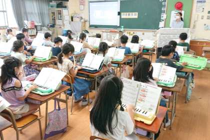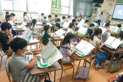 音楽科の時間は、鍵盤ハーモニカで「かえるのがっしょう」を練習しました。