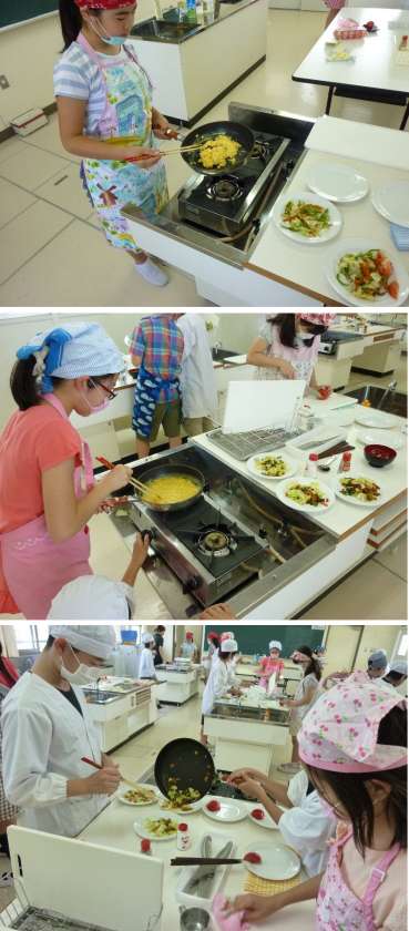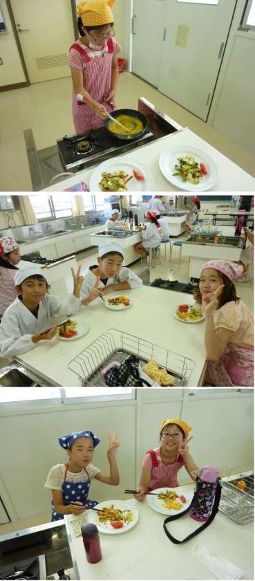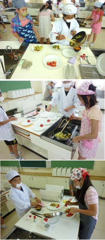 6年の調理実習では野菜いためとスクランブルエッグを作りました。なかなかさまになってますね。