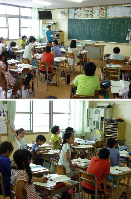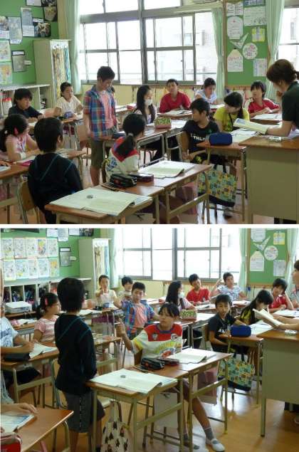 6年生の国語では「風切るつばさ」を学習しています。登場人物の心情の変化を読み取っています。子どもたちからいろいろな意見がとびだします。ハンドサインで意見を交流しながらがんばっています。