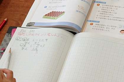 算数科の時間は、教科書の「わり算」の学習の「たしかめポイント」の問題を考えました。