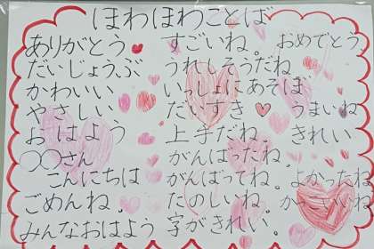 「ほわほわ言葉」は。言われてうれしくなったり、元気がでたりする言葉です。
