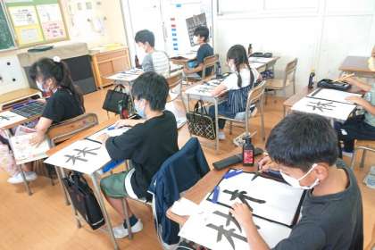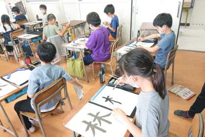 書写の時間は、毛筆で「林」の字の練習をしました。