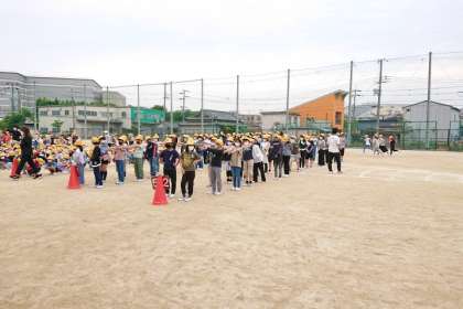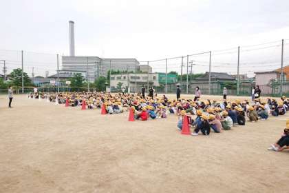 今日は、3分40秒ほどで全校児童が運動場に集まることができました。