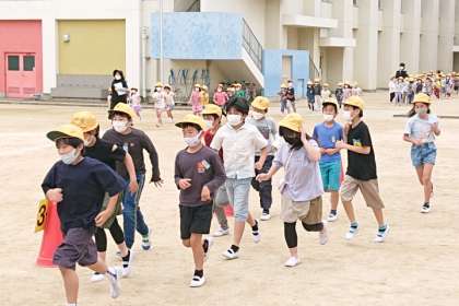 自分たちの命を守るための基本的な行動の仕方を身に付けるようにするため、地震を想定した避難訓練を行いました。