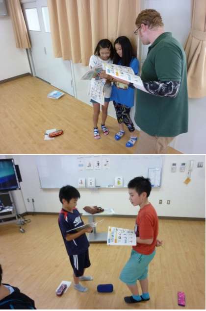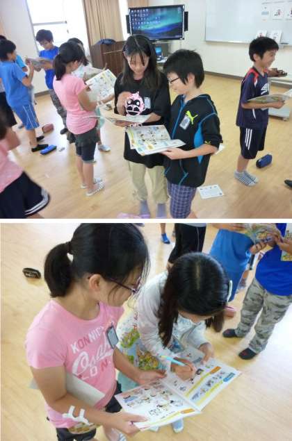 今日の英語授業は、「Can you 〜?」「Yes,I can」の学習です。ペアになってお互いにインタビューして答えます。たくさんの人とコミュニケーションをとりながらの授業で、ほのぼのしてい楽しそうです。