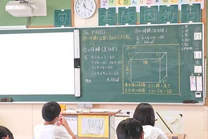 算数科の時間は、直方体や立方体の体積を、計算で求める方法を考えました。