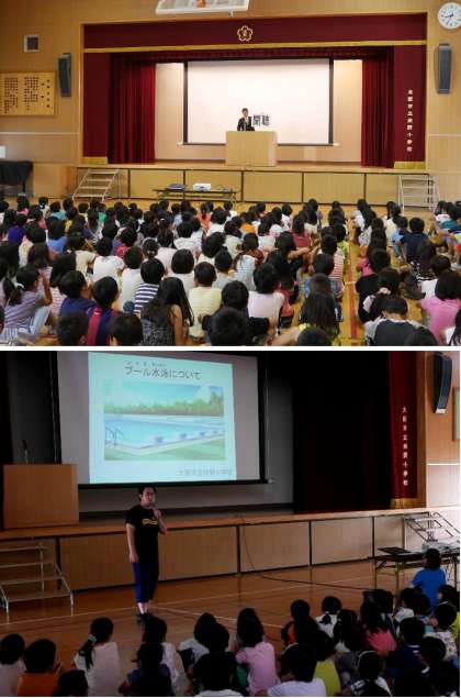 今週はプールびらきがあります。担当の先生からプールの注意がありました。先生たちがコントでクイズをしてわかりやすかったですね。