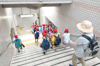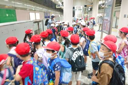 鶴見緑地駅から電車に乗って、森ノ宮駅をめざします。