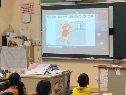 校長講話の後、生活指導担当からは、登下校中、家に帰ってからの外でのすごすときに事故や事件に巻き込まれないよう、どのようにすごせばよいのかについて話をしました。