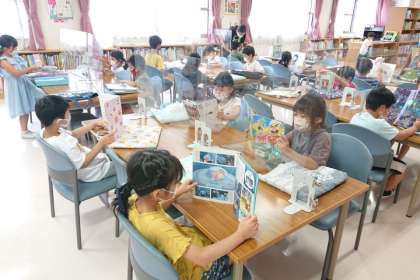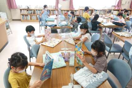 図書室で、自分で本を選んで静かに読んでいます。