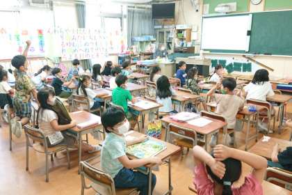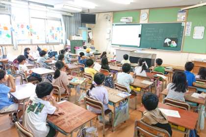 教室の子どもたちは、楽しそうにクイズに参加していました。