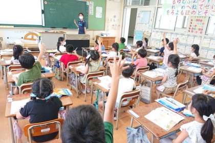 算数科の時間は、たし算の式になる問題をつくる学習をしています。