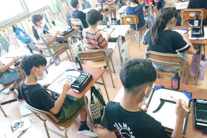 「たれ」と中の部分の組み立て方に気を付けて書くことがめあてです。