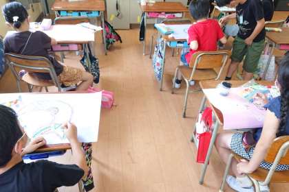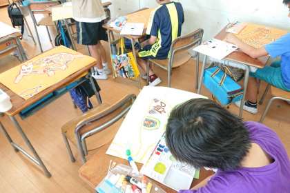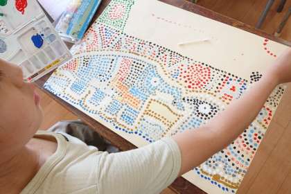 図画工作科の時間は、点で表現する「アボリジニアート」を描きました。