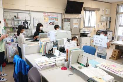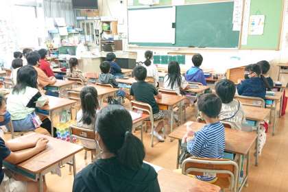 今日の児童集会は、ドレミ班の各教室に班ごとに集合し、オンラインで行いました。