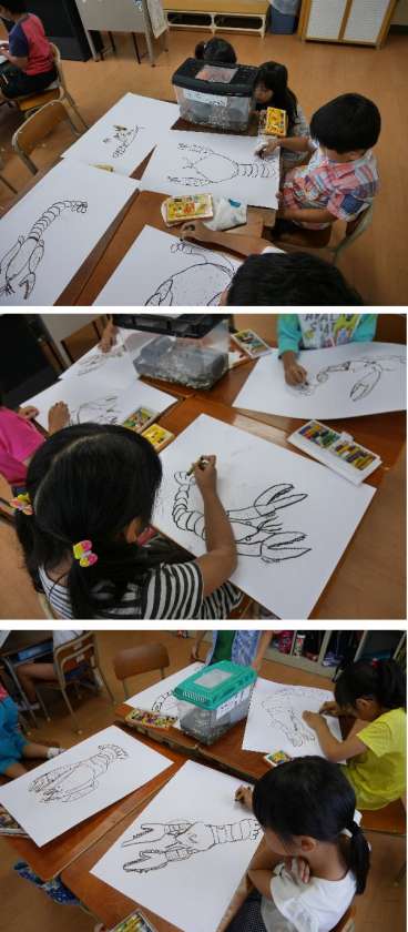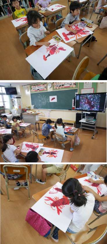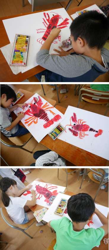 ザリガニさんが教室にきた!2年生が絵を描いた