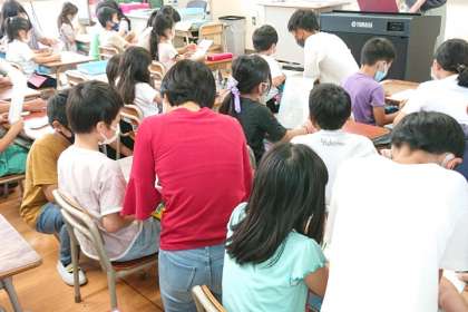 6年生のおかげで、1年生も元気に歌うことができました。