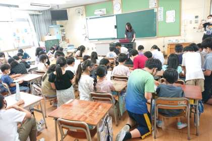 最後に、1年生の教室に集まり、6年生と1年生で校歌を合唱しました。