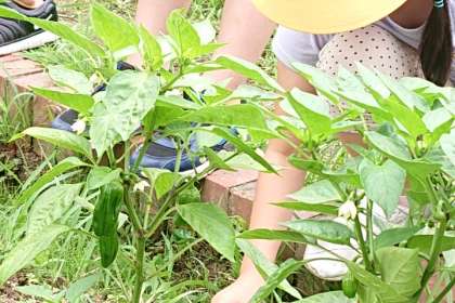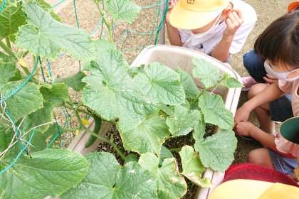 きゅうりやピーマンの実が大きくなっています。