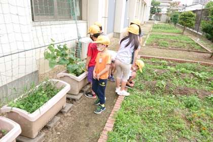 生活科の時間に、学習園で自分たちで育てている野菜のお世話をしました。