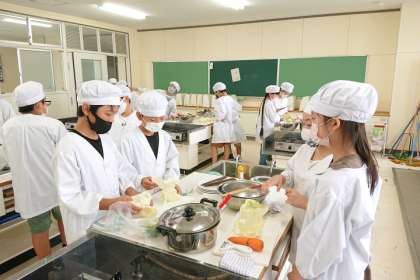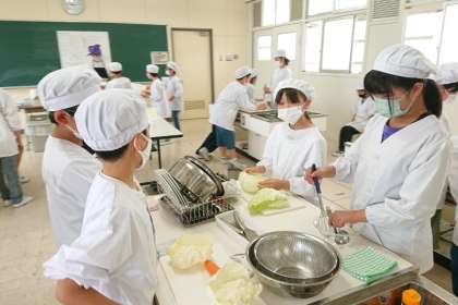 家庭科の時間は、「ゆで野菜サラダ」の調理実習を行いました。