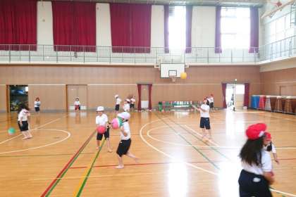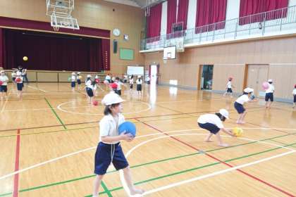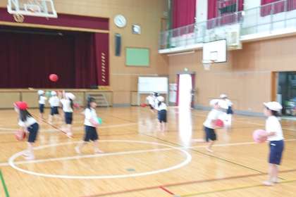 今日の体育科の学習は、体育館でボールを使った運動をしました。