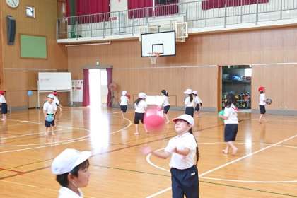 今日の体育科の学習は、体育館でボールを使った運動をしました。