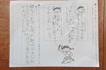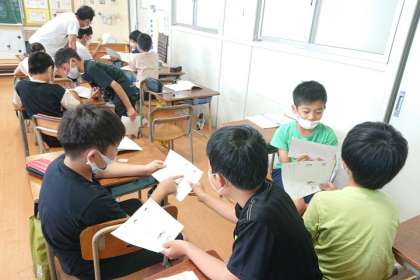 今日は、最後の場面で笑いながら走り続けた主人公の「のぶよ」が心の中で「けんじ」や「お母ちゃん」にどんなことを言ったのか、「のぶよ」になったつもりで考えました。