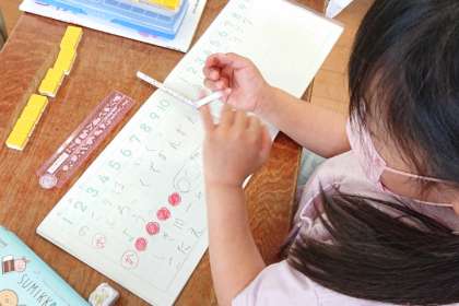 「えんぴつが 10ぽん あります。3ほん けずって あります。けずって いない えんぴつは、なんぼんですか。」
