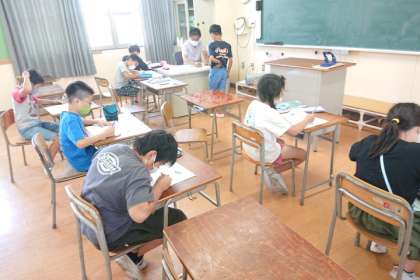 算数科の時間は、学年を3分割して学習しています。