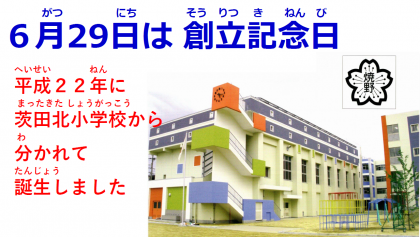 6月29日は、焼野小学校の「創立記念日」です。