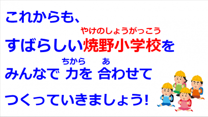 本校が更なる発展を遂げられますよう、今後とも学校教育へのご理解・ご協力をお願いいたします。