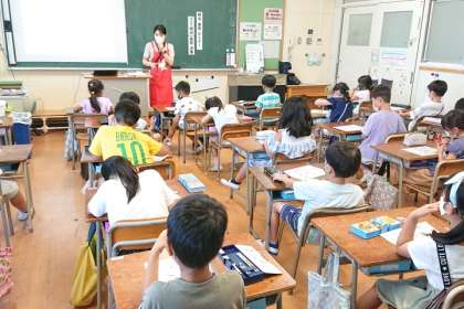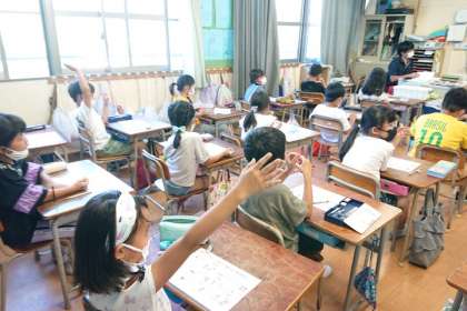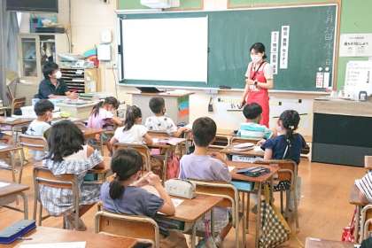 今日は、(株)明治の方に来校していただき、手洗いについての出前授業を行いました。