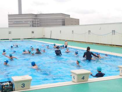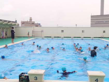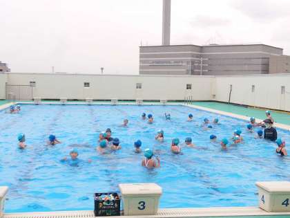 最後に、水にもぐって、プールの底にあるいろいろなものを拾ったり、フープをくぐったりして楽しみました。