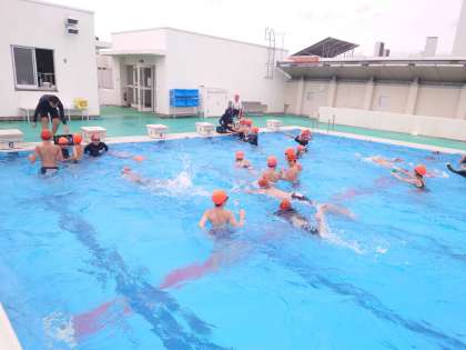 今日のプール学習は、水慣れの後、けのび、ばた足、クロールの練習をしました。