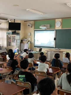 今日の集会は、職員室とドレミ班の各教室をオンラインで結び、リモートで行いました。