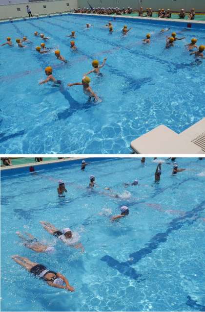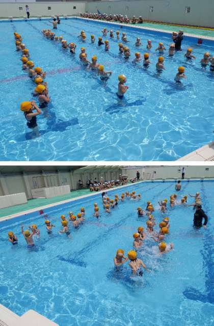 1・2生の水泳学習でした。すこしずつ水になれてきましたか?