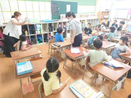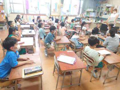子どもたちは、教室のロッカーの数がいくつなのか「2とび」で数えました。