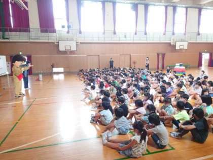 鶴見警察署のおまわりさんに来ていただき、講堂で防犯教室を行いました。