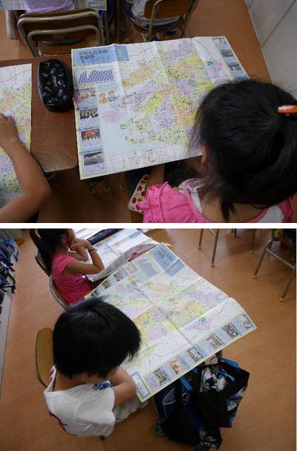 4年では大阪について学習をすすめています。大阪市のいろいろなデータが載っている地図をみて勉強しています。