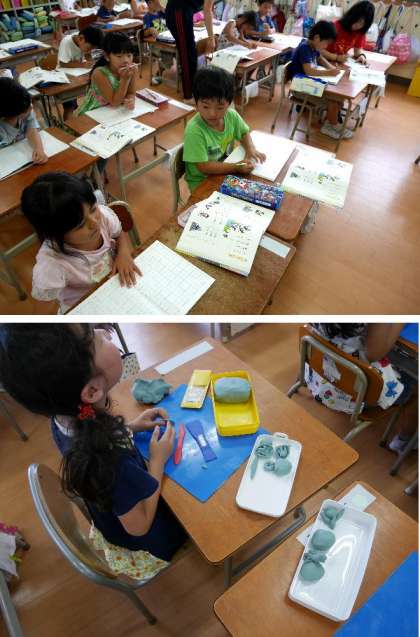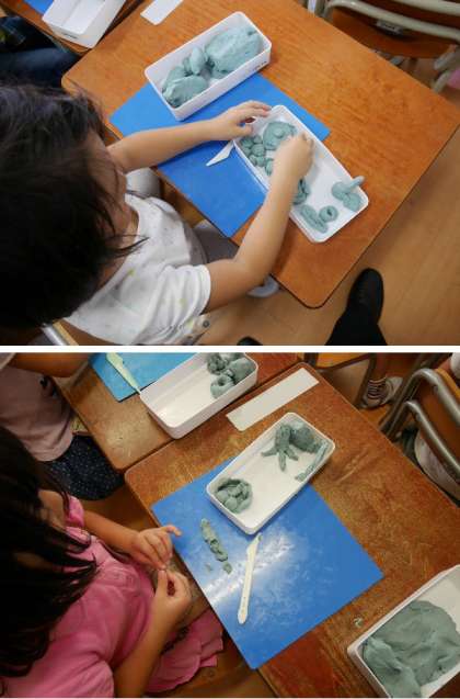 ねんどで「すてきなおべんとう」を作っていました。自分の好きなものをねんどで作っていました。タコさんウィンナーやカニを作っている人もいます。