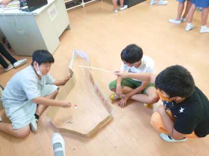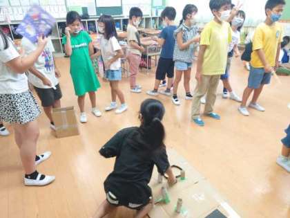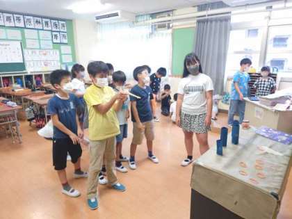 1学期最後の日、輪投げ、射的、魚釣りなど、手作りのゲームで楽しみました。